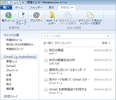 ここでは、Windows Live メールとGmailを同期する設定方法をご紹介します。